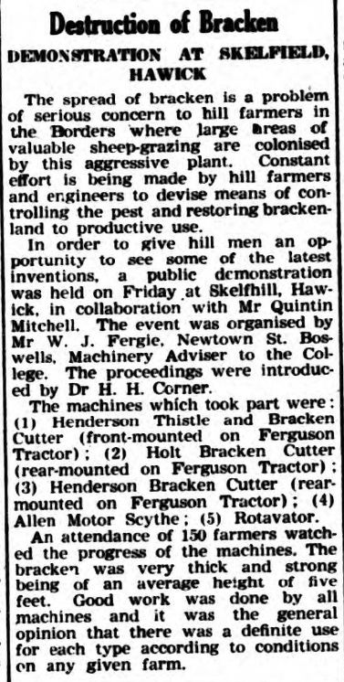 Henderson made tractor-mounted and two-wheeled pedestrian thistle and bracken cutters.
