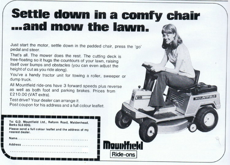 - Mountfield 25 Vintage Ride-on-mower Advert 1974 with Price