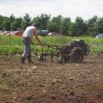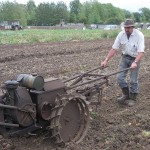 Early Trusty Tractor with Briggs and Stratton ZZ engine working with Trusty Intermediate Cultivator.