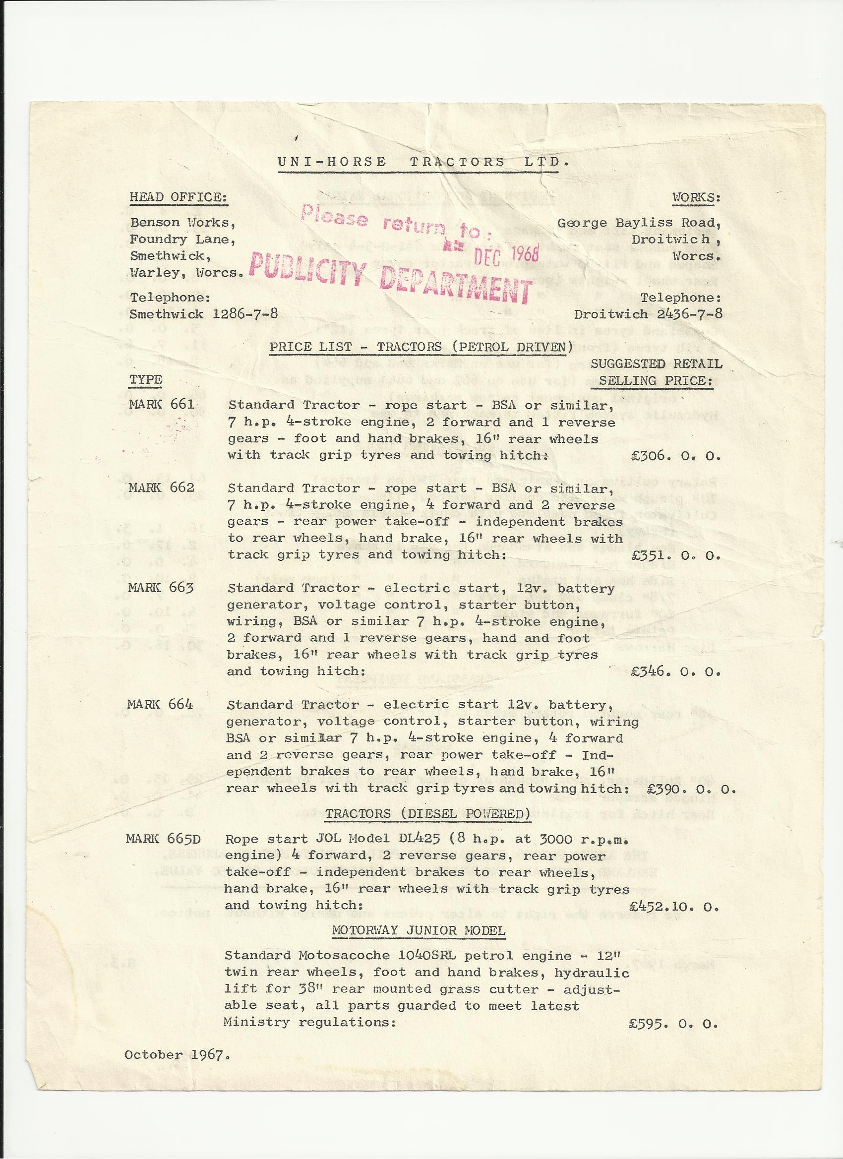 - Uni-Horse Tractor Brochure