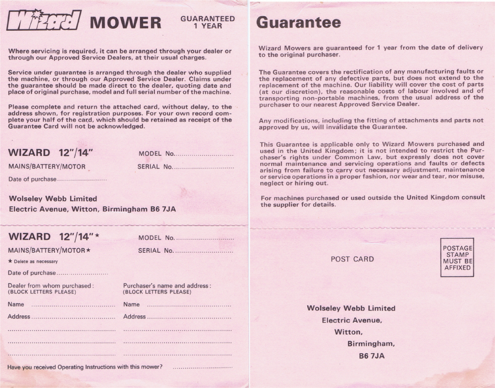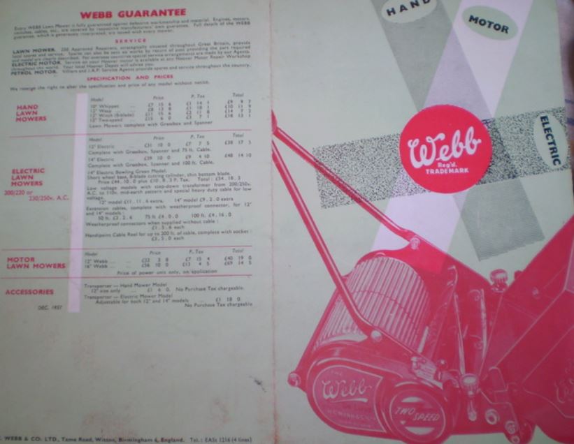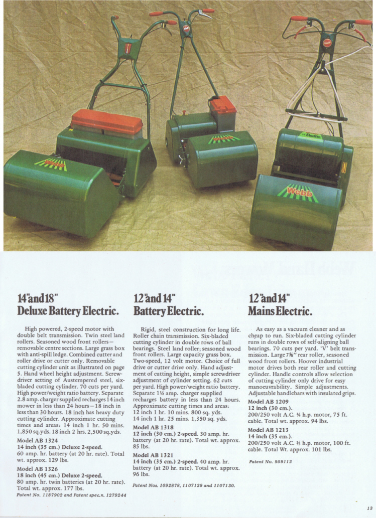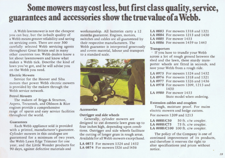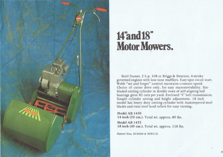 Webb Whippet, Wasp, Witch Hand Mowers 1973
