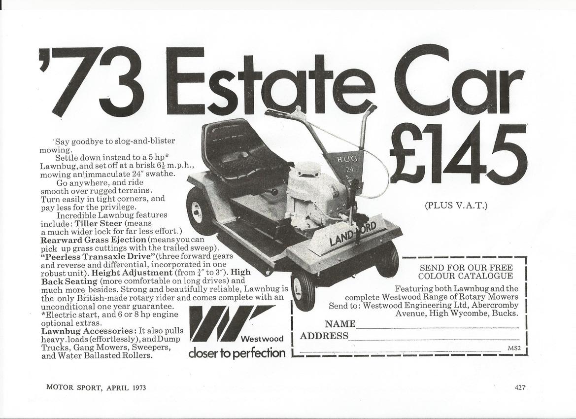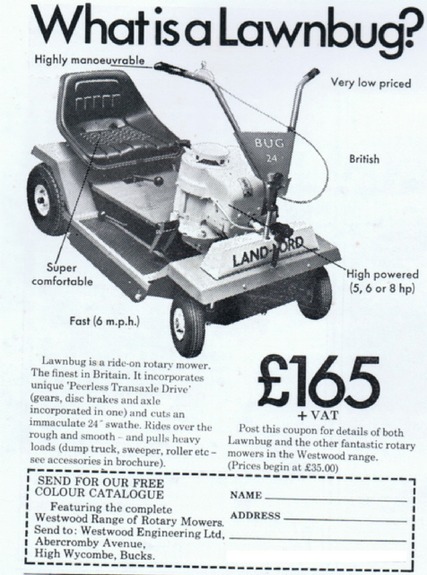 Westwood Lawnbug Vintage Advert 1973 with Price