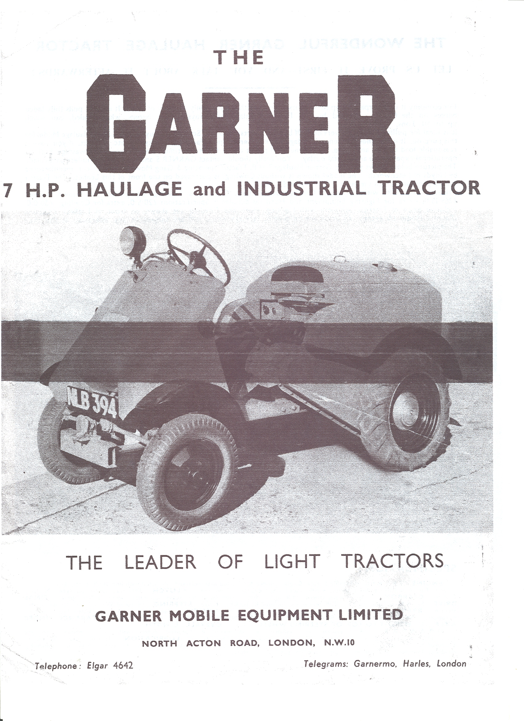 Between 1948 & 1955 Garner Mobile Equipment Limited, a subsidiary of Garner Motors of North Acton Road, London, England, produced a range of small, light, two and four wheeled tractors for the horticultural, market garden and small acreage markets.