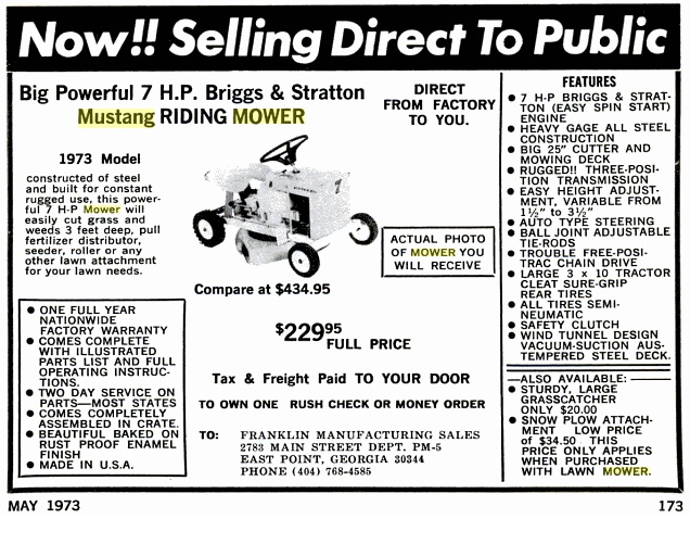 see advert). With either 5, 7 or 8hp Briggs and Stratton engines this mower was also rebadged by